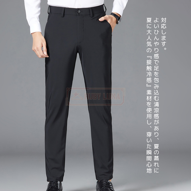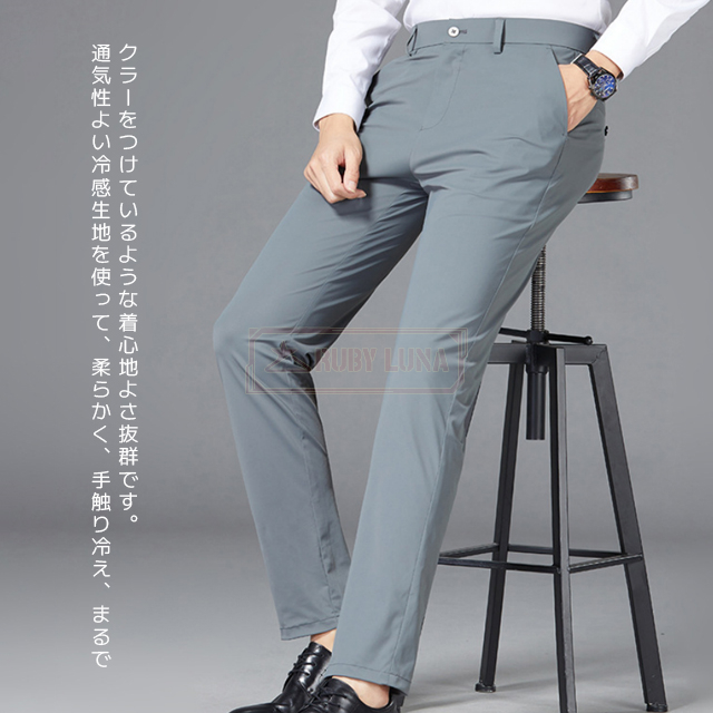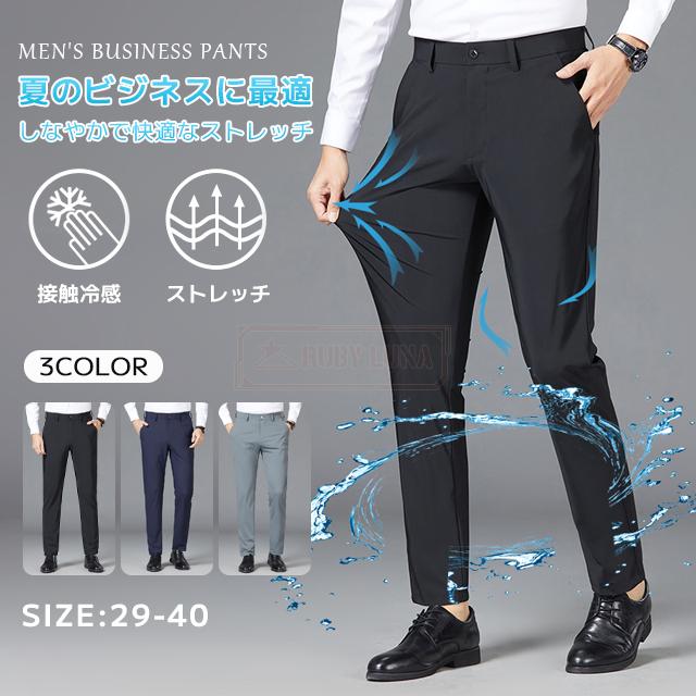 最安挑戦 冬新作 送料無料 新作 スラックス メンズ ビジネス パンツ スリム 細身 春夏 涼しい アイスシルクパンツ ひんやり 接触冷感 ビジネス ズボン 大きいサイズ おしゃれ 男性 通勤 カジュアルパンツ 吸水 速乾 無地 軽量 薄手