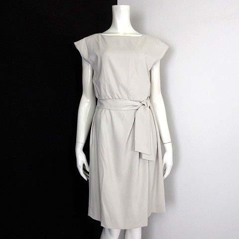 【中古】アンタイトル UNTITLED ワンピース ウエストリボン タック ひざ丈 フレンチスリーブ 半袖 M 2 ライトベージュ