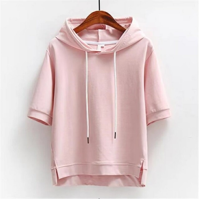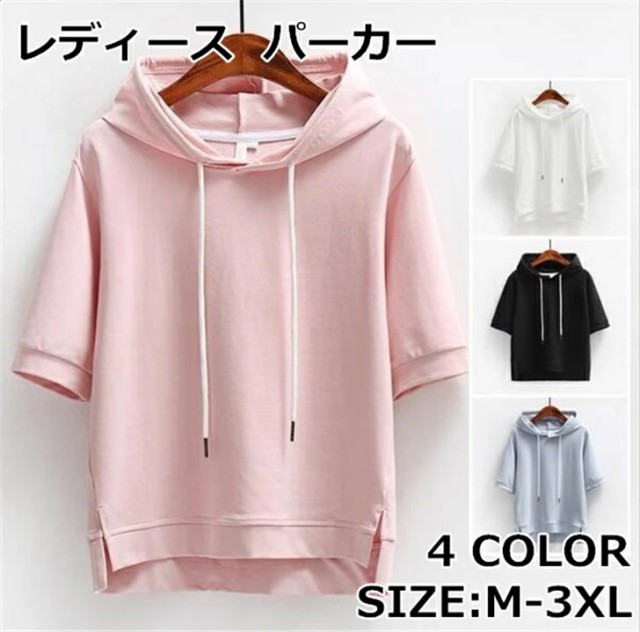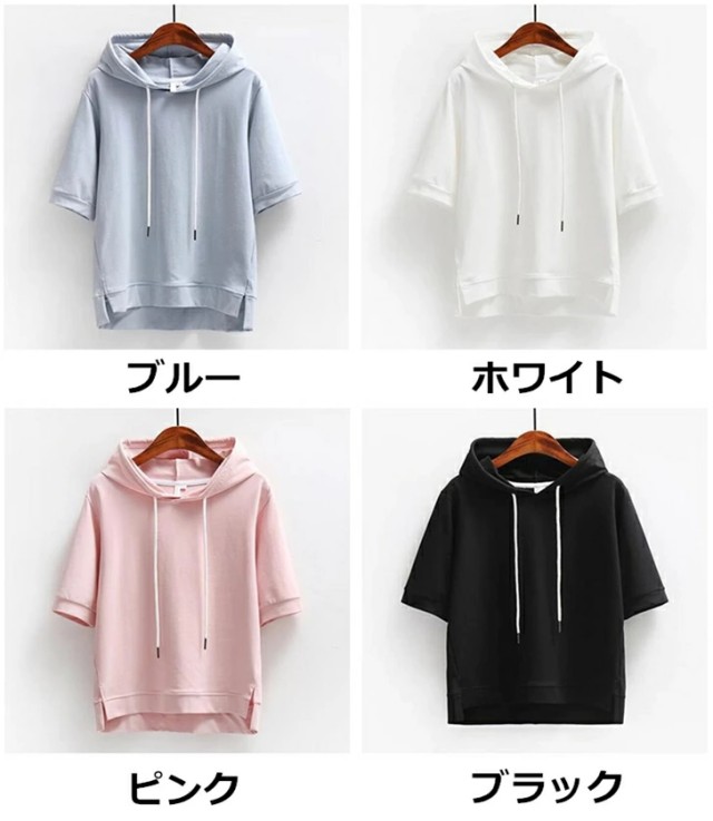 パーカー レディース 半袖 トップス 大きいサイズ フード付き Tシャツ カットソー 前後差 夏新作