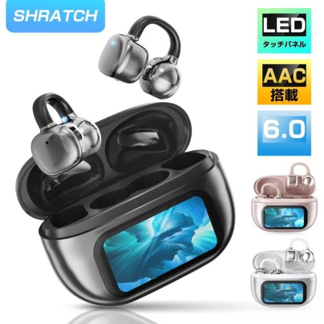 ワイヤレスイヤホン イヤーカフイヤホン bluetooth イヤホン 即納 液晶付き 骨伝導イヤホン AAC高音質 骨伝導イヤホン 業界TOP Bluetooth 6.0搭載 60H連続再生 HiFi高音質 LEDディスプレイ 送料無料
