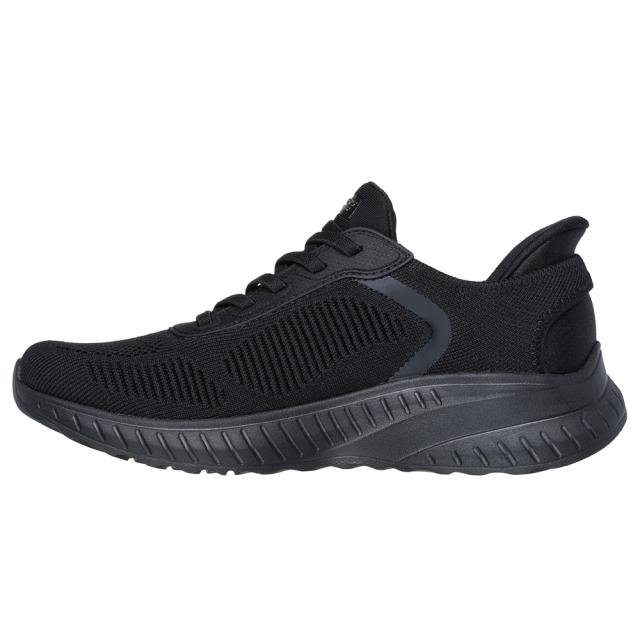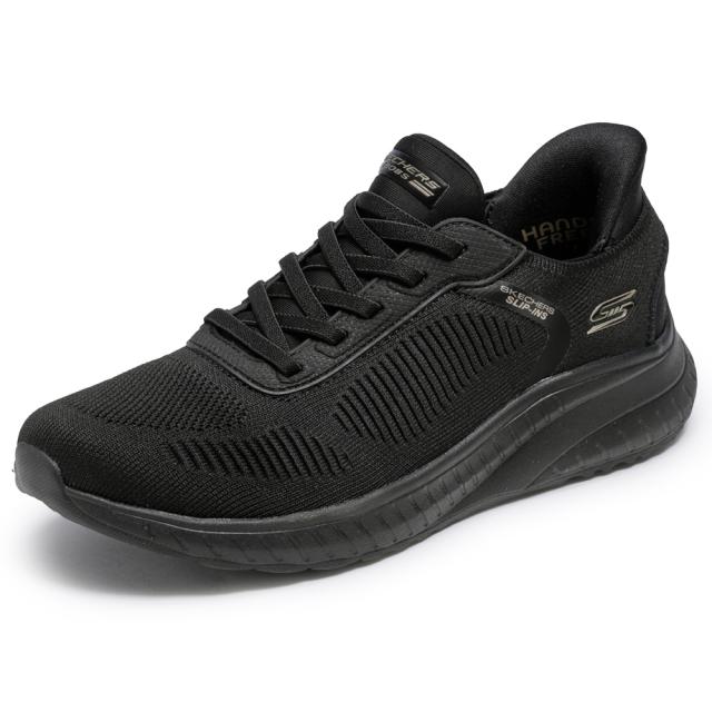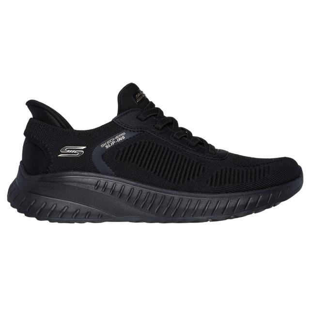 スケッチャーズ スリップインズ レディース ワイド 幅広 スニーカー 黒 スリッポン SKECHERS Slip-ins ボブス スポート スクワッド カオス 117497W BBK TPE ゆったり ハンズフリー