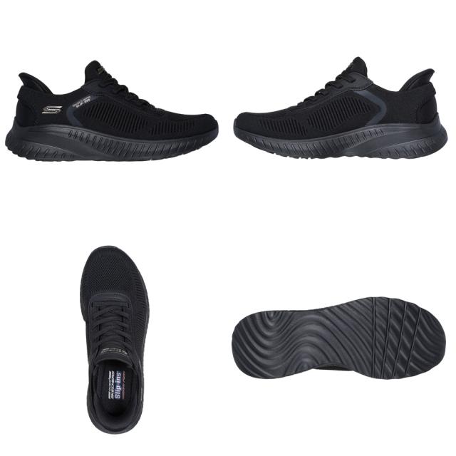 スケッチャーズ スリップインズ レディース ワイド 幅広 4E スニーカー 黒 スリッポン SKECHERS Slip-ins ボブス スポート スクワッド カオス 117497W BBK TPE ゆったり ハンズフリー 立ったまま履ける 手を使わずに履ける