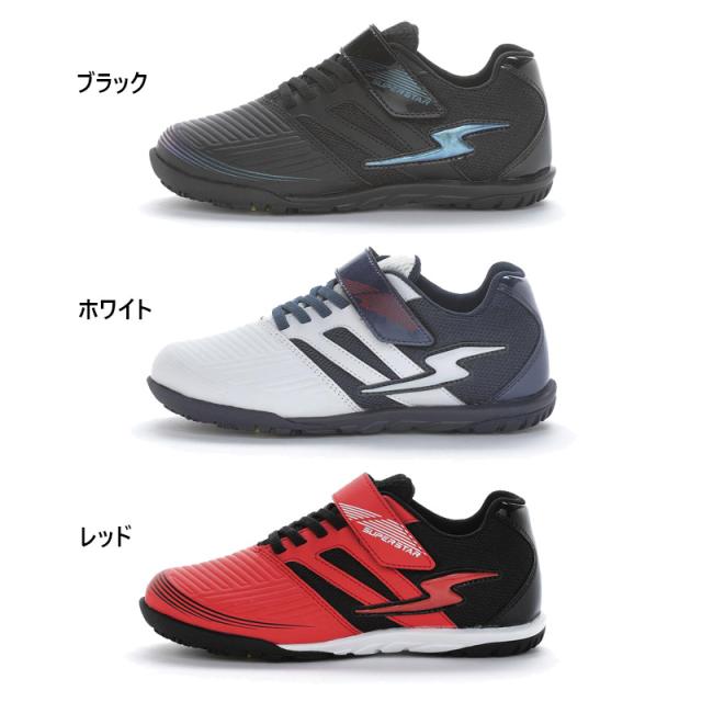 スーパースター ジュニア キッズ SS J1226 男の子 女の子 靴 シューズ ゴム紐×バンド ボール遊び サッカータイプ 抗菌防臭 軽量 洗えるインソール かっこいい ホワイト 白 レッド 赤 送料無料 SUPERSTAR