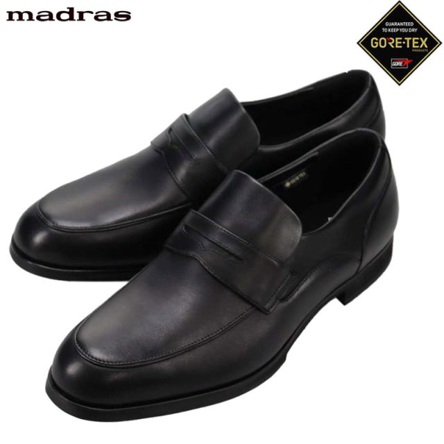 4E 幅広 ワイド マドラスウォーク メンズ 全天候快適 コインローファー ビジネス 靴 シューズ 防水 GORE-TEX ゴアテックス 本革 レザー 蒸れにくい ブラック 黒 送料無料 madras Walk MW9903