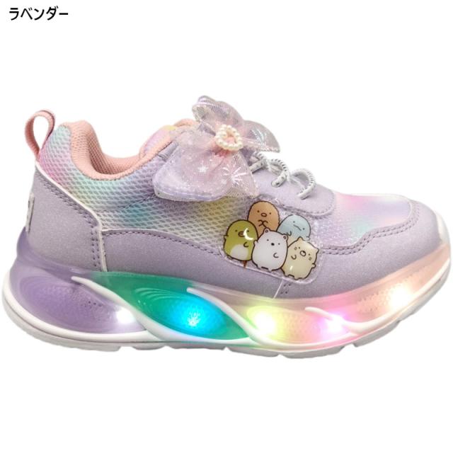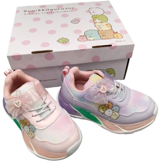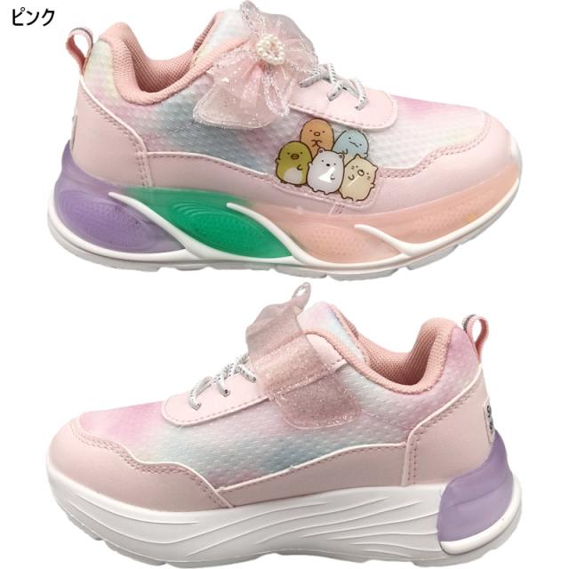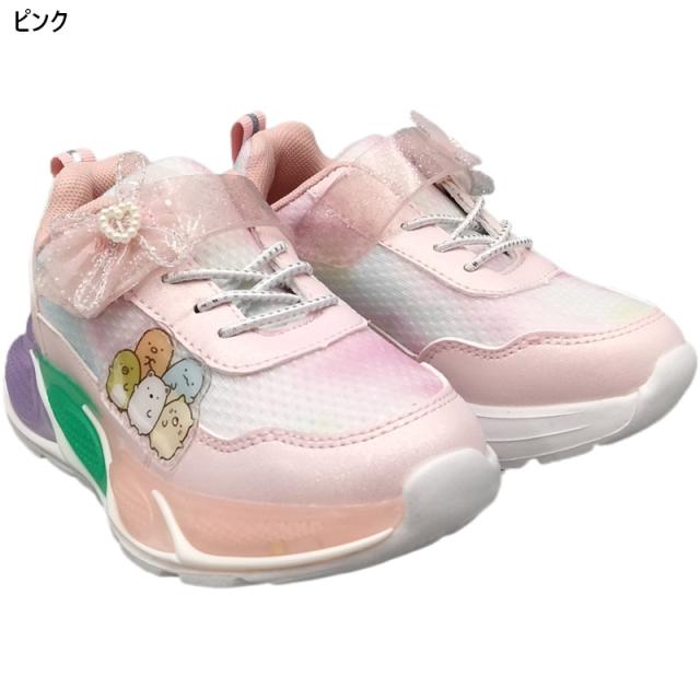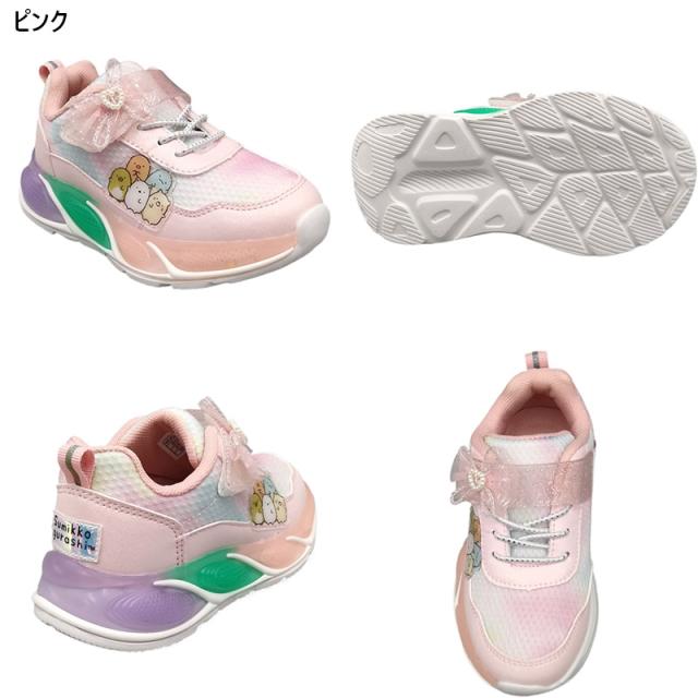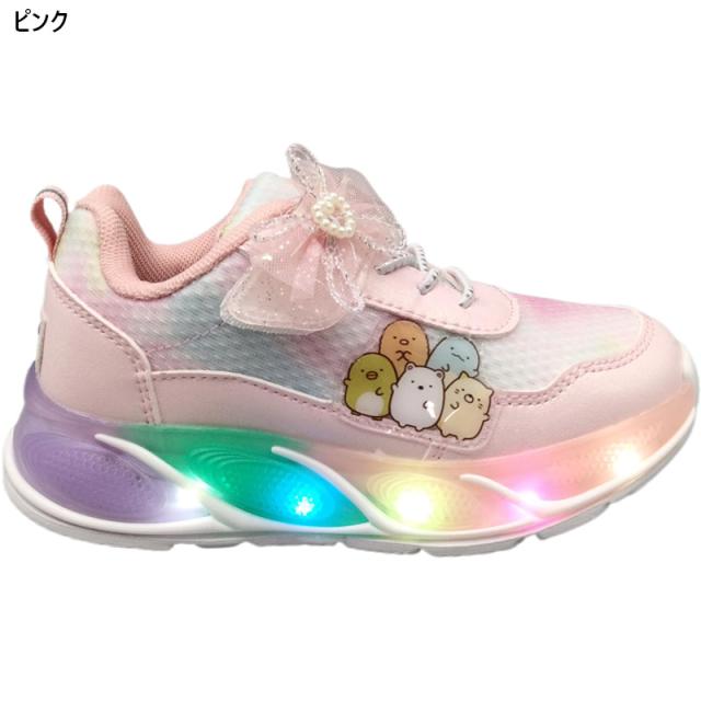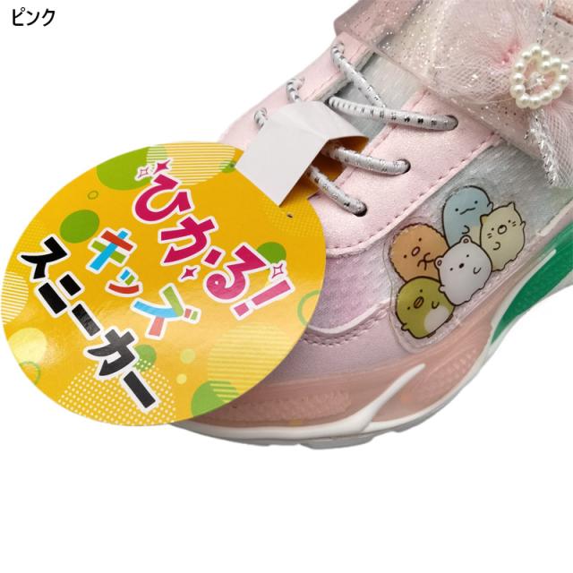 光る靴 子供キャラクター ジュニア キッズ ガールズ すみっコぐらし 女の子 キャラクター 靴 シューズ 可愛い マジックテープ ベルクロ 通園 通学 お出かけ ピンク 送料無料 38