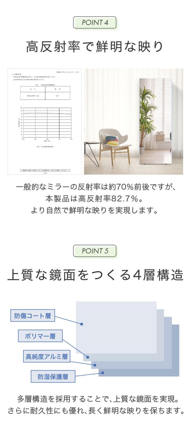 ・離れても歪みにくく全身鏡にぴったり