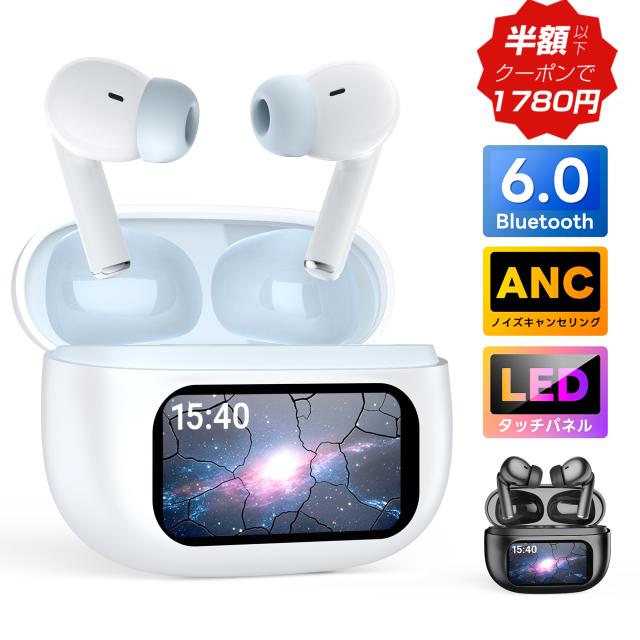 イヤホン bluetooth ワイヤレスイヤホン カナル型 即納 液晶付き イヤホン AAC高音質 残量表示 Siri対応 タッチ操作 マイク付き 業界TOP Bluetooth 6.0搭載 60H連続再生 HiFi高音質 LEDディスプレイ 送料無料