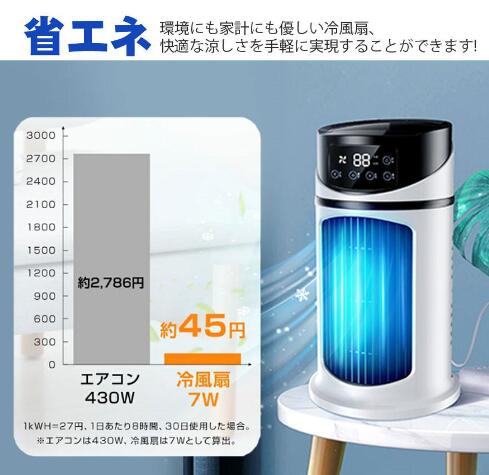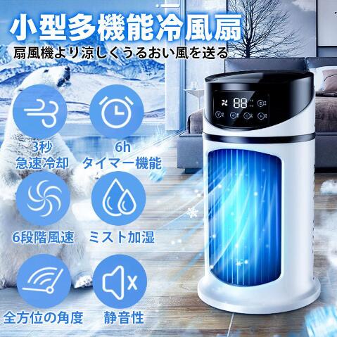 冷風扇 冷風機 卓上 コンパクト 氷 冷却 加湿 静音 6段階風量 タイマ一機能 小型 USB給電 ポータブルエアコン 扇風機 ミニクーラー