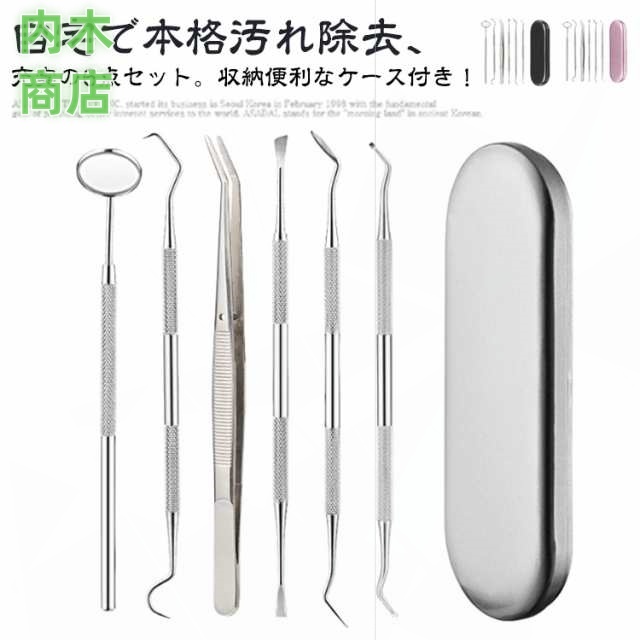ステンレス製 歯石除去 歯石とり 虫歯 口腔清潔 敬老の日 自宅用 6点セット ヤニとり プロ仕様 自宅用 自分で取る 器具 デンタルツール 歯石取り 口腔ケア器具 歯科ツールセット スケーラー 歯垢 先極細