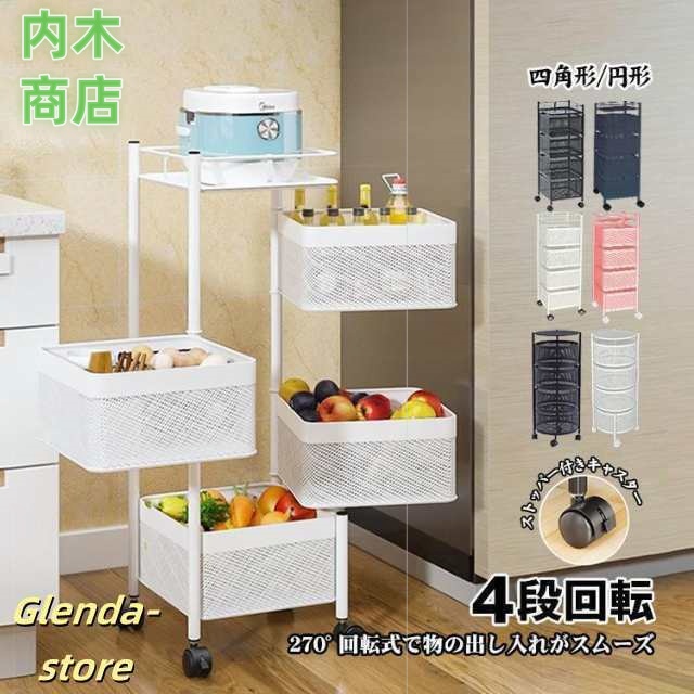 インテリア ーリー キャスター付き キッチンワゴン 庭 ny410 4段 植物 回転 ツールワゴン キッチンカウンター 天板 多肉棚 収納 小物 バスケッ
