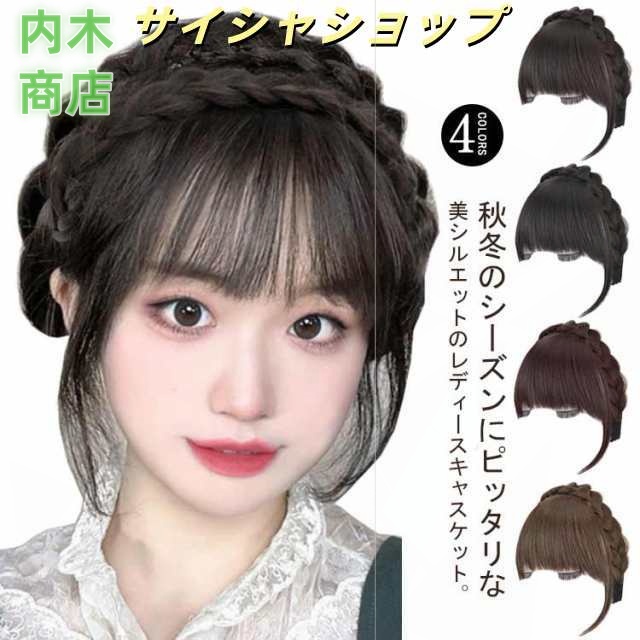 三つ編み 三つ編み カチューシャ 前髪ウィッグ付き 痛くないカチューシャ ヘアアクセサリー カツラカチューシャ ウイッグ 空気感 ヘアバンド D構造 白髪隠し 空気感 分け目自然 小顔効果 薄毛隠し 女性