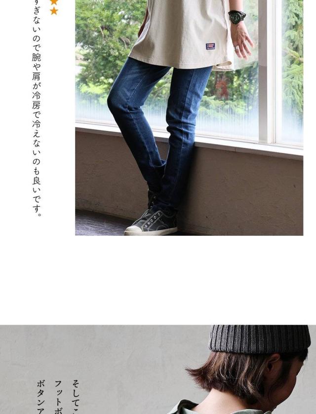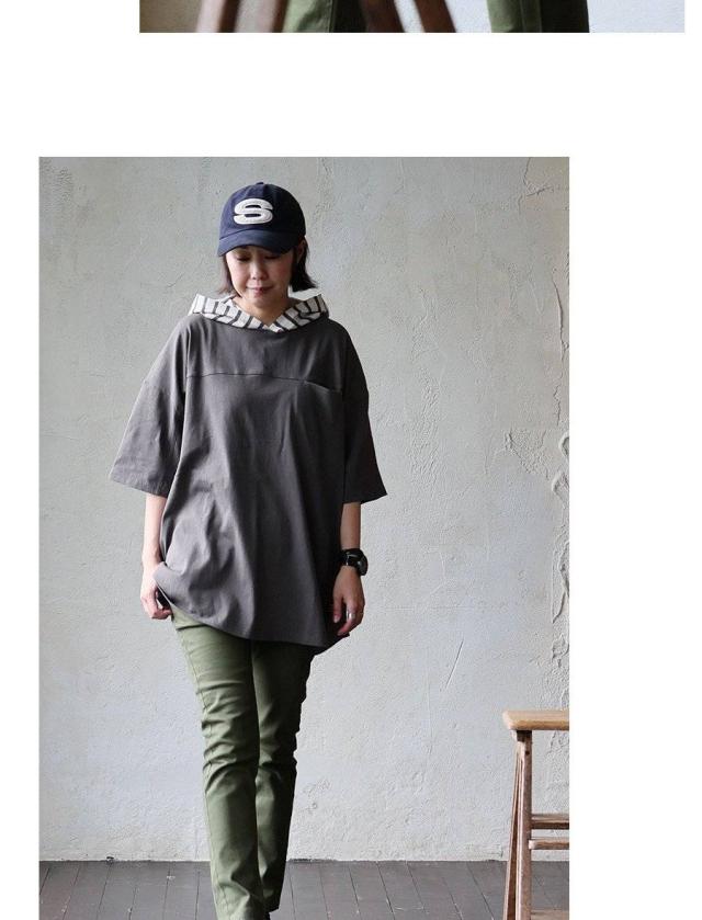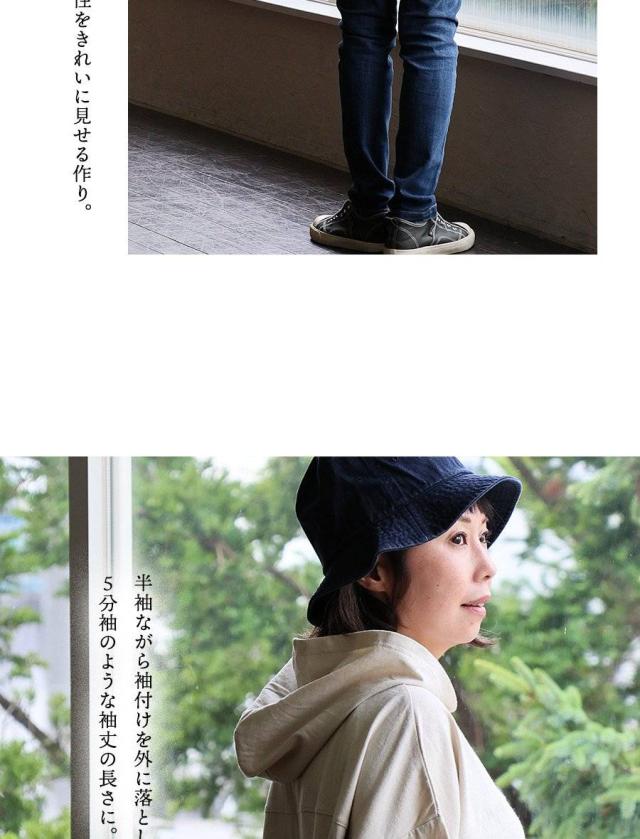 ・ゆるっとした作りに、折り返し風の半端な袖丈で、腕が細く見える上に「抜け感」のあるスッキリ感。