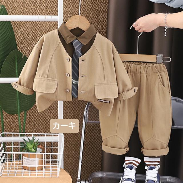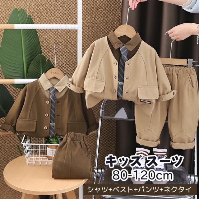 キッズ スーツ 男の子 3点セット 子 キッズ ベビー マタニティ 豊富な品揃え カーキ ダークブラウン 80cm 90cm 100cm 110cm 120cm