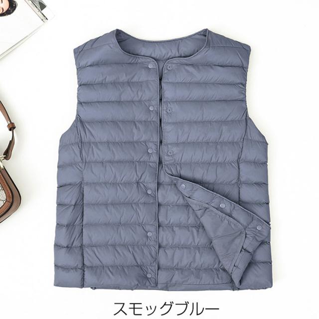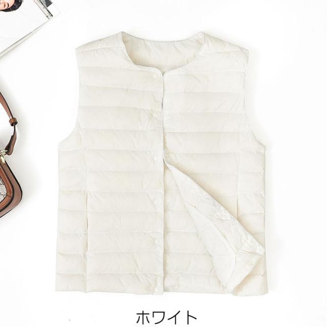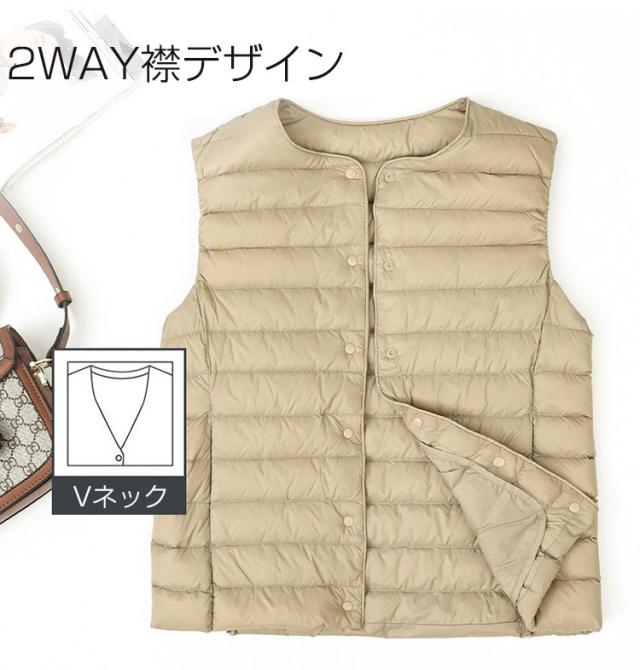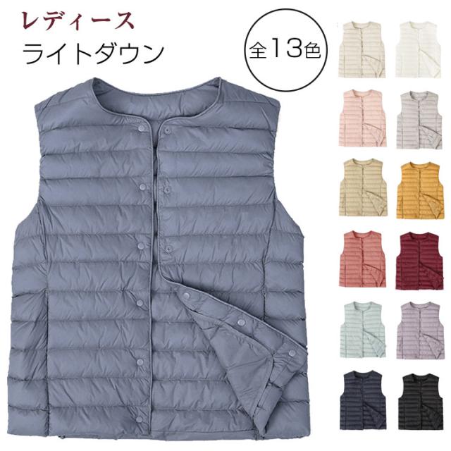 全13色 ダウンベスト レディース ライトダウン キルティングベスト 2way襟 軽い 暖か ベスト シンプル インナーダウン アウター あたたかい 防寒 薄い 無地 ショート丈 M L