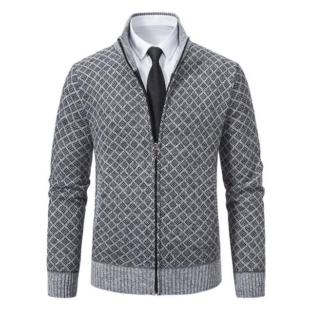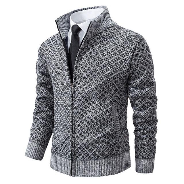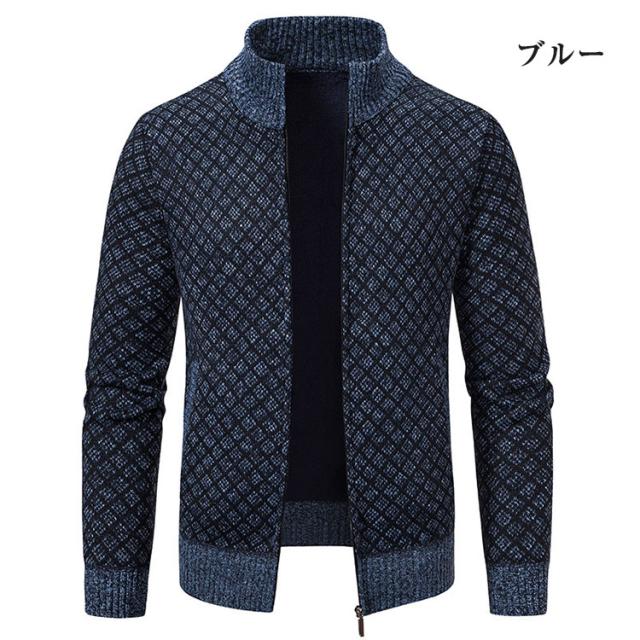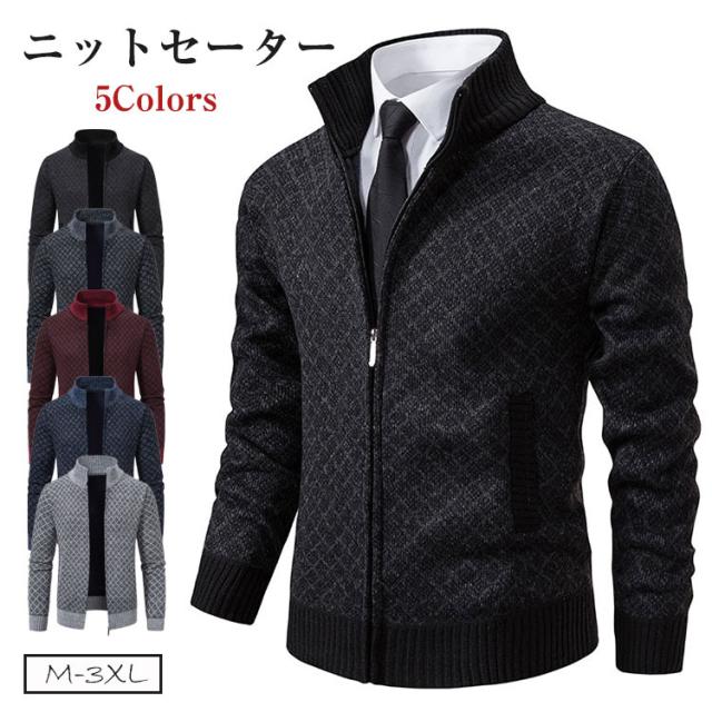 秋冬 セーター メンズ アウター ニット ジャケット ニットメンズ 立ち襟 チェック柄 ニットセーター メンズアウター ファッション 40代 50代 60代 ジップ ハイネック ジップアップ