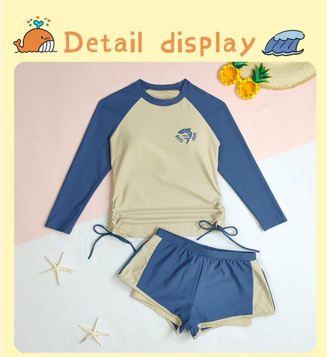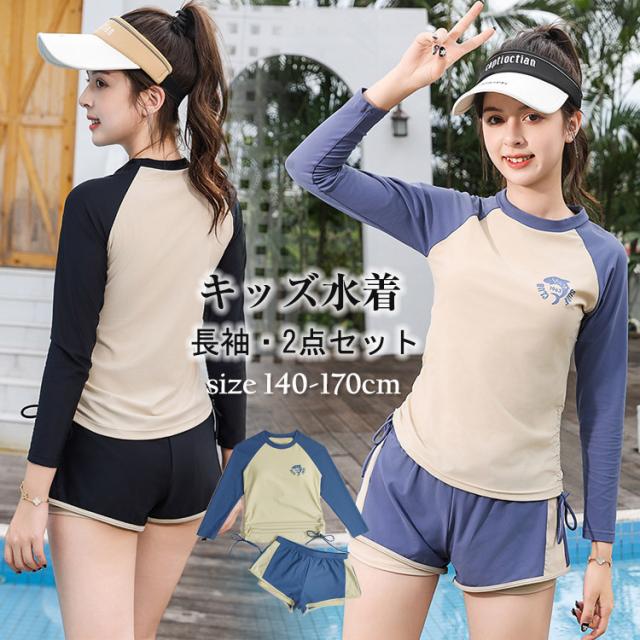 水着 女の子 子供 ジュニア キッズ セパレート水着 長袖 2点セット 上下 スクール水着 水泳授業 紫外線対策 日焼け対策 140 150 160 165 170cm 胸パッド付き レディース ガー