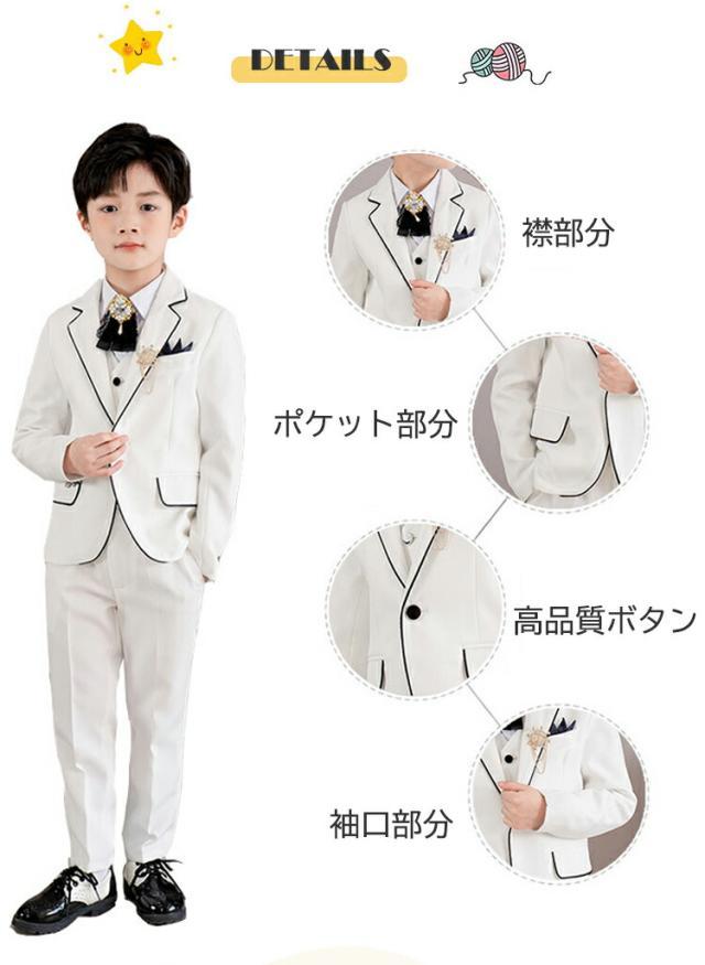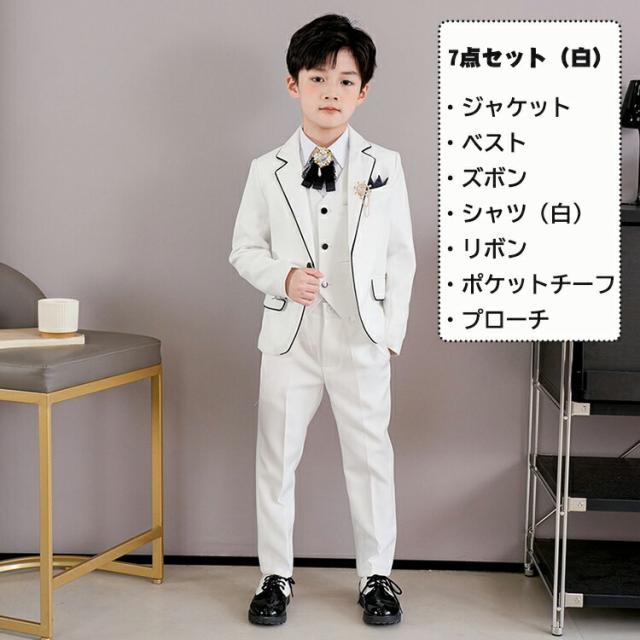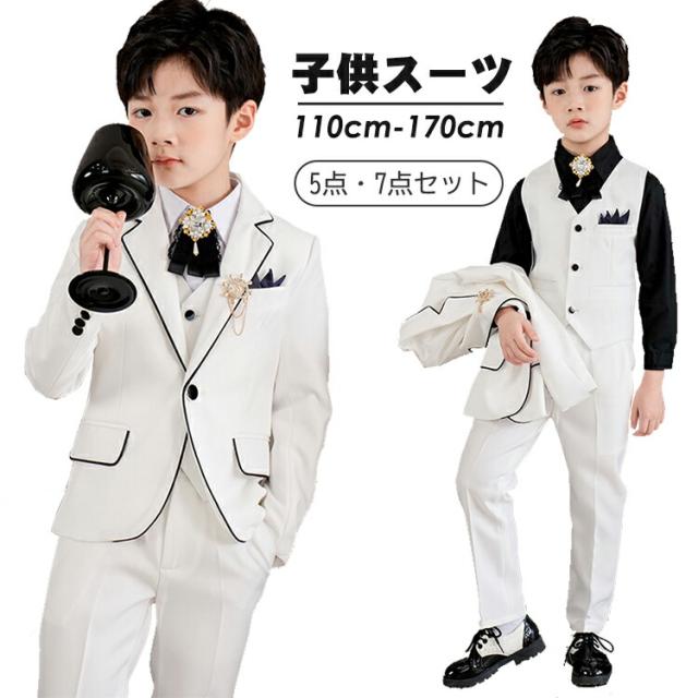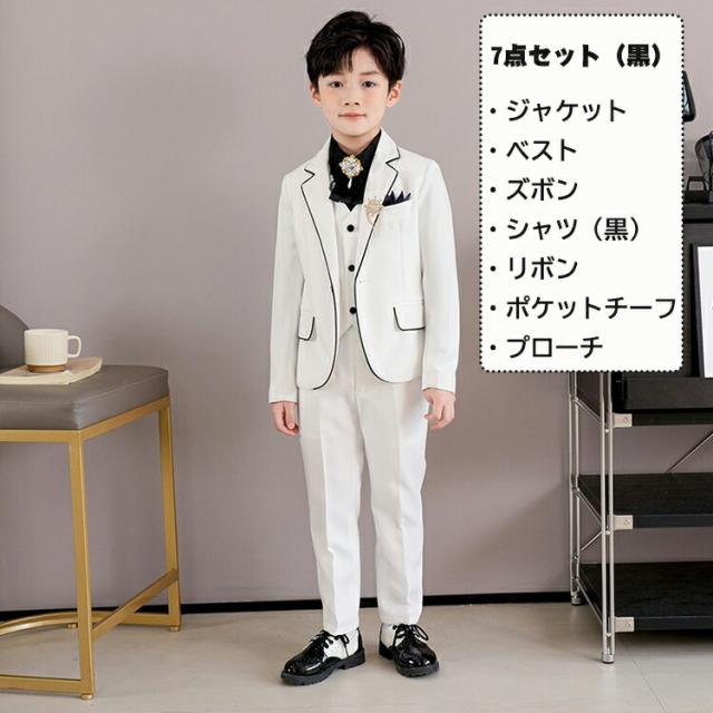 男の子 フォーマルスーツ 白 ホワイト キッズ スーツ カジュアルセットアップ スーツ お得なセール 5点セット(白) 5点セット(黒) 7点セット(白) 7点セット(黒) 110cm 120cm 130cm 140cm 150cm 160cm 170cm