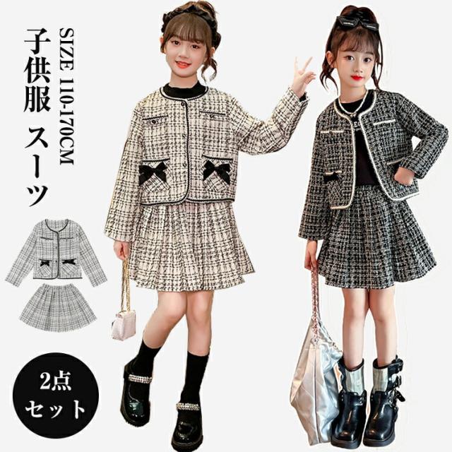 子供服 入学式 卒業式 スーツ 女の子 フォーマルスーツ スカート ツイード ジュニア キッズ セレモニー 七五三 子供スーツ キッズスーツ 制服 可愛い 2点セット セットアップ チェック柄 ボレロ