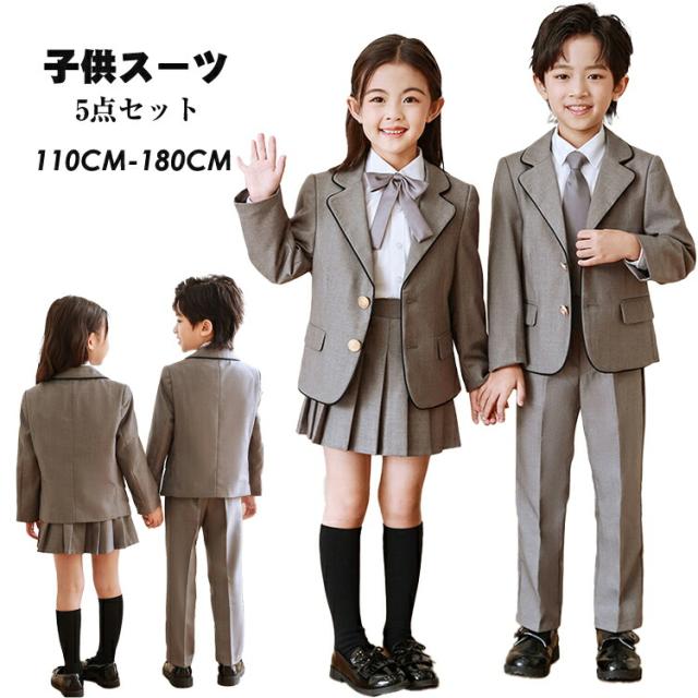 子供服 入学式 卒業式 スーツセット 女の子 男の子 フォーマルスーツ ジュニア キッズ 七五三 子供スーツ キッズスーツ 制服 可愛い 5点セット セットアップ 発表会 結婚式 面接 お受験 110
