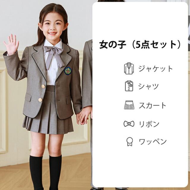 5点セット(女の子):ジャケット+シャツ+スカート+リボン+ワッペン注意 PC環境・光の具合により、色や素材のイメージが写真と若干異なる場合がございます。
