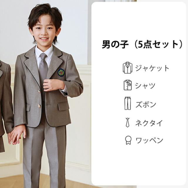 便利な5点セットなので、統一感のあるスタイルを提供します。可愛らしさと上品さを兼ね備えたこのスーツは、お子様の特別な日をより一層引き立てます。素材 混紡、綿生産国 中国サイズ 110/120/130/140/150/160/170/180cmセット内容 5点セット(男の子):ジャケット+シャツ+ズボン+ネクタイ+ワッペン