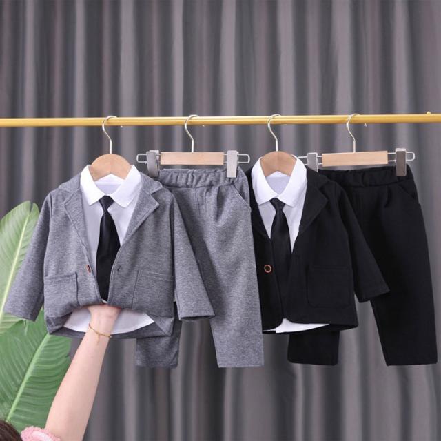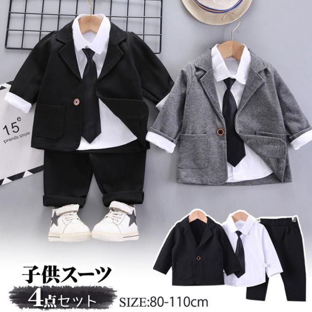 4点セット 男の子 キッズ スーツ フ キッズ ベビー マタニティ 豊富 ブラック グレー 80cm 90cm 100cm 110cm