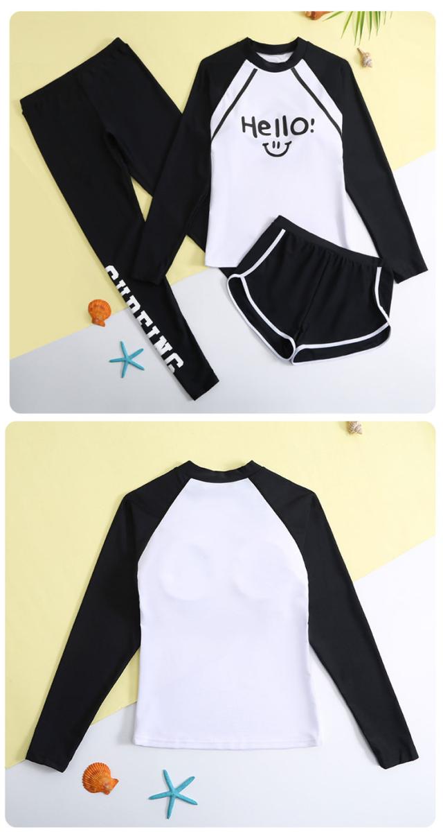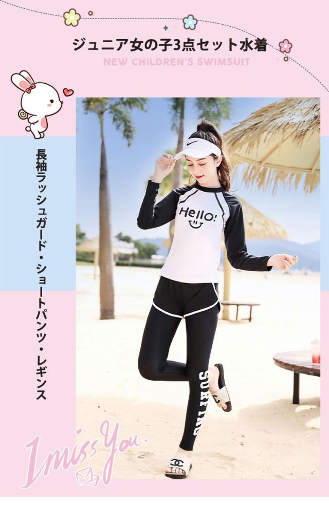 子供 水着 ジュニア キッズ 女の子 セパレート スクール水着 トップス 長袖 ショートパンツ レギンス 3点セット 上下セット ラッシュガード 可愛い お洒落 140cm -170cm シンプル ス
