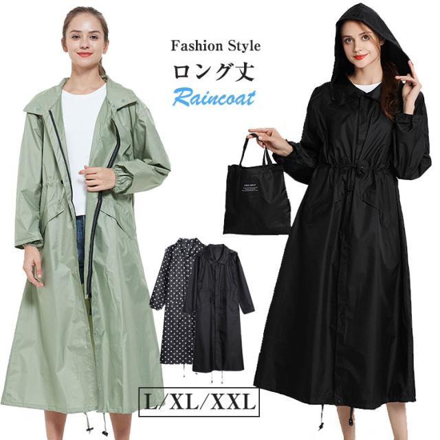 ロング丈 レインコート レディース 薄 アウトドア ウェア レインウェア レインジャケット 続々入荷中 ブラック ブラック(ドット柄) ダークブルー(ドット柄) グリーン L XL XXL
