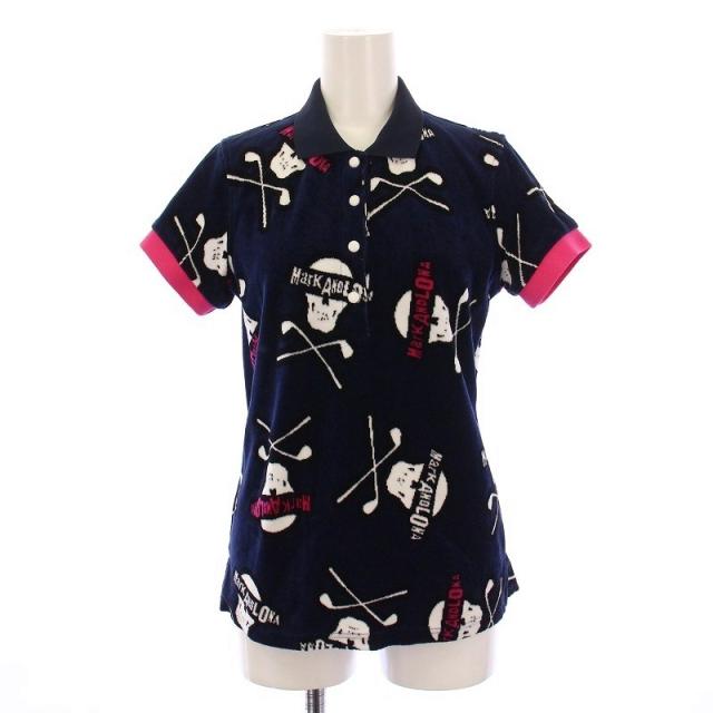 【中古】マーク&ロナ MARK&LONA ポロシャツ 半袖 スカル柄 パイル地 38 ネイビー ピンク MLW-18W-P08 /BM レディース