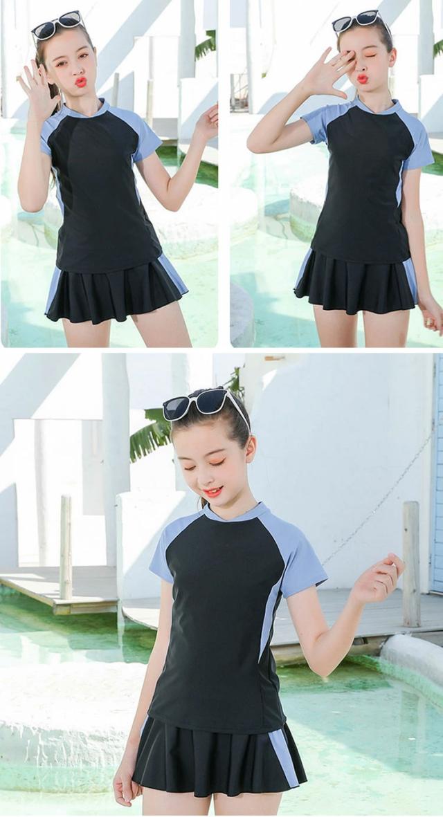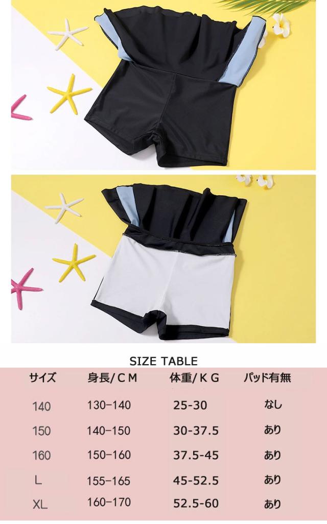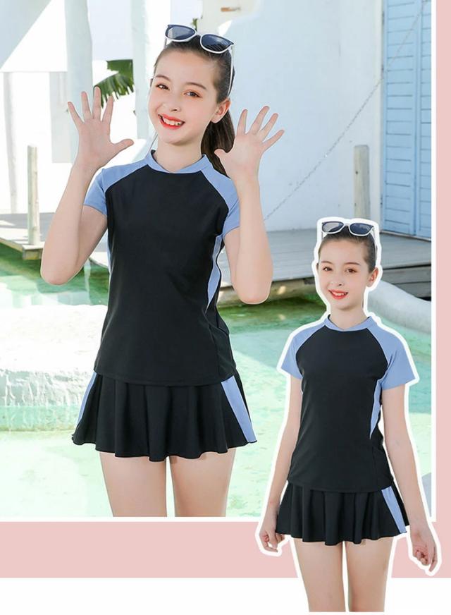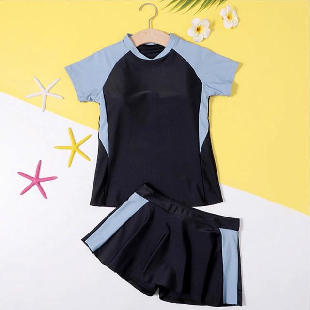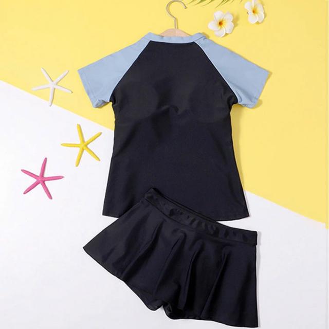 子供 水着 ジュニア トップス 半袖 ショートパンツ付き キッズ 女の子 セパレート スクール水着 2点セット 上下セット ラッシュガード 可愛い お洒落 140cm 150cm 160cm 170c