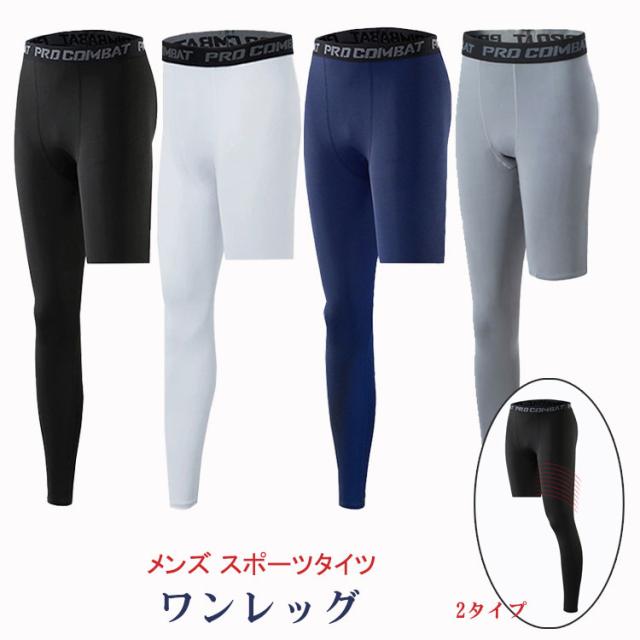 スポーツタイツ 九分丈 メンズ コンプレッションタイツ ワンレッグ 2type ストレッチ 速乾 アンダーウェア スポーツレギンス トレーニング スポーツ練習 4色 S-3XL