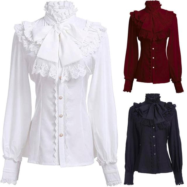 シャツ レディース コスプレ ビクトリア 中世ヨーロッパ ステージ衣装 ゴシック ロリータシャツ 長袖 ハロウィン仮装 クリスマス パーティー 学園祭 撮影 舞台 3色 S M L XL 2XL 白