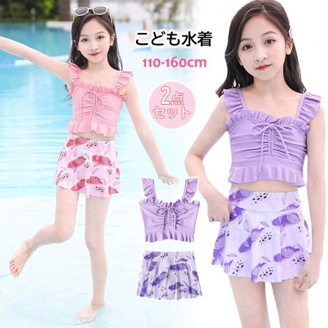 子供みずぎ 女の子 セパレート 2点セ キッズ 水着 36%Off ピンク パープル L(100-110cm) XL(110-120cm) 2XL(120-130cm) 3XL(130-140cm) 4XL(140-150cm) 5XL(150-165cm)
