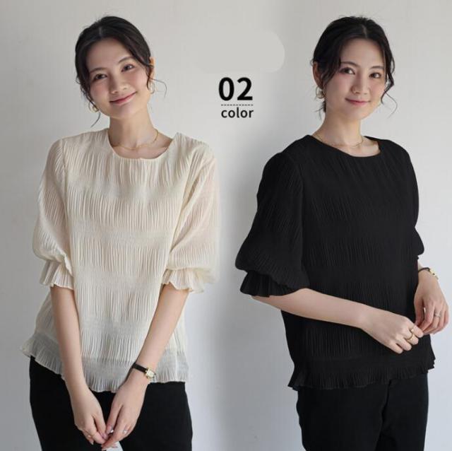 ブラウス 春夏 シフォン 5分袖シャー