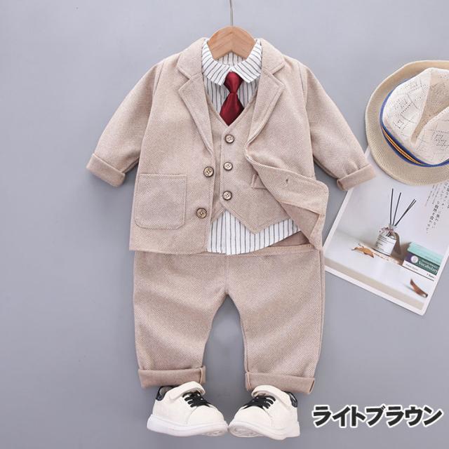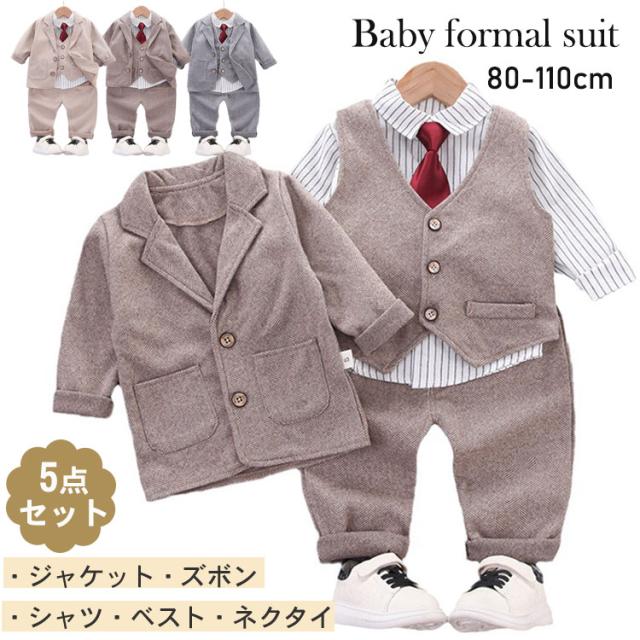 ベビー スーツ フォーマル 男の子 男 キッズ スーツ カジュアルセットアップ スーツ お得なセール グレー ライトブラウン ブラウン 80cm 90cm 100cm 110cm