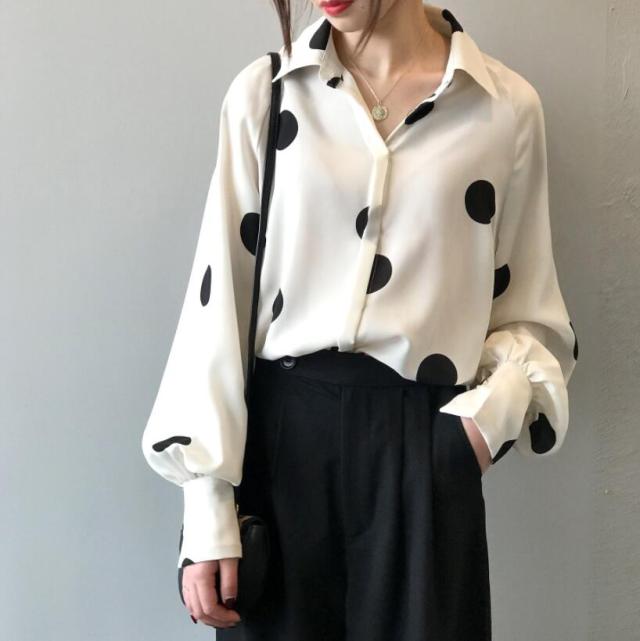 ブラウス レディース とろみシャツ 長袖 ブラウスフォーマル トップス レディース 春 ゆるシャツ水玉カジュアル体型カバーシンプル通勤