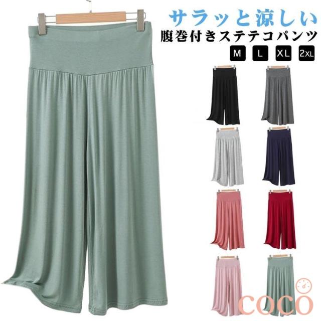 【coco】腹巻付きステテコパンツ 夏 レディース ロングパンツ 腹巻付きステテコパンツ ルームウェア 腹巻き付き 7分丈パンツ ワイドパンツ イージーパンツ 涼