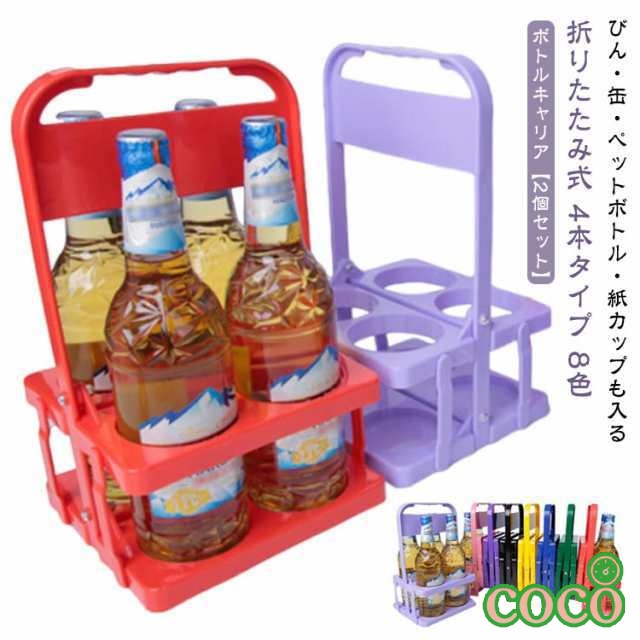 【2個セット】 折りたたみ ボトルキャリアー 4本用 ドリンクホルダー ペットボトルホルダー 水筒収納バッグ 軽量 コンパクト 持ち運び便利 ハンドル付き フードコート スポーツ観戦 買い出し レジャー アウトドア 運動会 部活 ピクニック BBQ