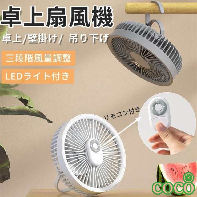 【coco】壁掛け 小型扇風機 充電式扇風機 静音 ミニ扇風機 リモコン付き 1台3役 吊り下げ 扇風機 usb 卓上 リビング 扇風機 扇風機