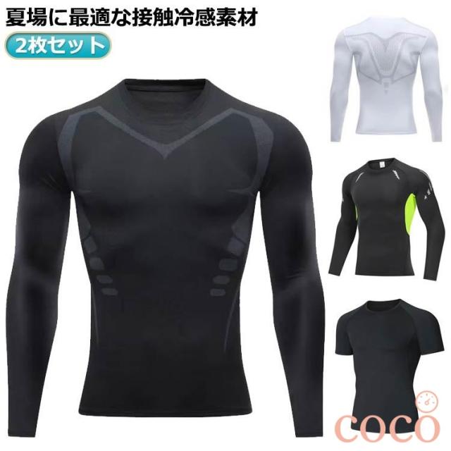 【coco】【2枚セット】長袖インナーウェア 夏用 接触冷感 吸汗速乾 消臭 抗菌 長袖インナーウェア 夏 メンズ アンダーシャツ ストレッチ 春夏 作業服 作業