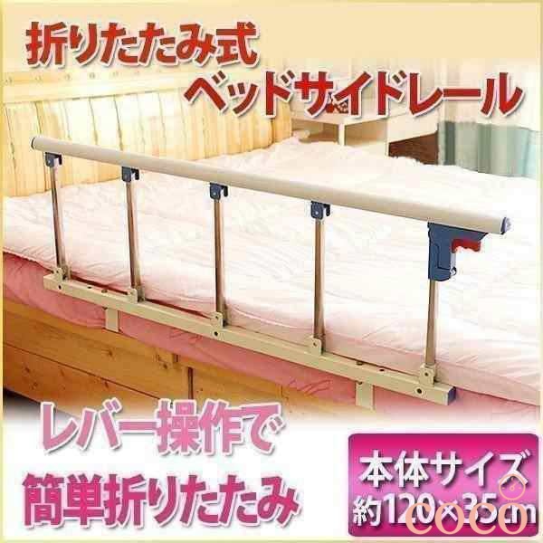 折りたたみ ベッドフェンス 転落防止 ベッドサイドガード ベッドガード 転落防止柵 介助バー 後付け 手すり 120×35cm ベッドサイドレール 高齢者 介護