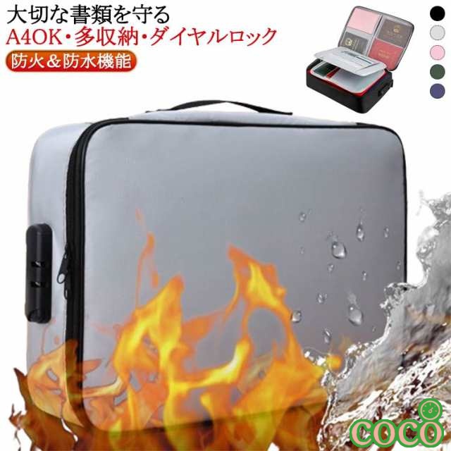 【coco】耐火金庫 鍵付き 手提げ 書類ケース 鍵付き 耐火/耐水 ケース 金庫 3層式 収納ボックス バッグ 集金袋 貴重品入れ 手提げ金庫 大容量 調節可能 ダイヤルロック 財布 A4 大容量 パスポートケース 旅行 お薬手帳 マルチケース 耐火ケース 書類 貴重品