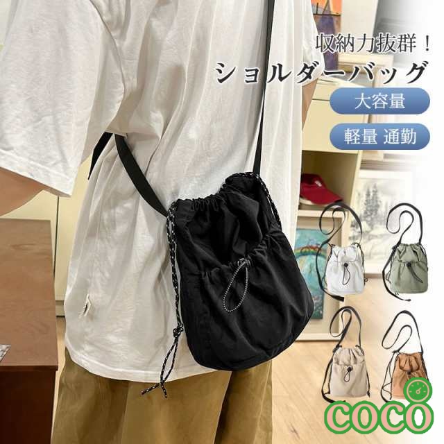 【coco】斜め掛け 肩掛け ミニショルダー 鞄 ショルダーバッグ 巾着ショルダー 軽量 レディース カジュアル ナイロン 通勤 巾着バッグ