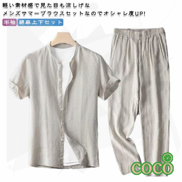 紳士服 パンツ ルームウェア 涼しい セットアップ ブラウス セットアップ リネン サマー メンズ シャツ 半袖 テーラードジャケット 薄手 Tシャツ 春 部屋着 サマージャケット リネンパンツ 大きいサイズ 上下 通勤 セット 父の日 ギフト