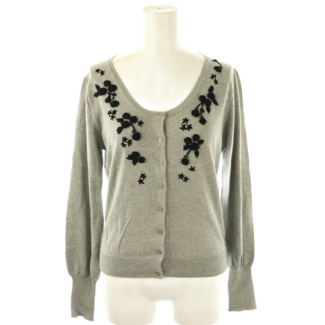 【中古】ロイスクレヨン シルク カシミヤ混 フラワーモチーフ カーディガン M グレー ブラック レディース