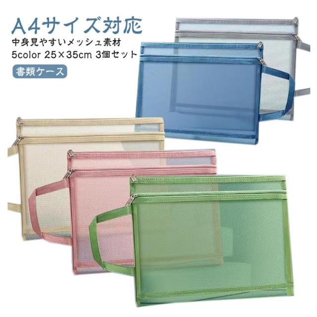 本 メッシュケース a4 文房具 ファスナーケース ポーチ 大容量 ファイル A4 メモ帳 書類ケース 書類入れ 事務用品 クリアフォルダー 小物入れ ファイル フォルダー 持ち運び 3個セット 旅行 トラベル ストラップ付き 軽量 受験用 ノートPC 持ち歩き用