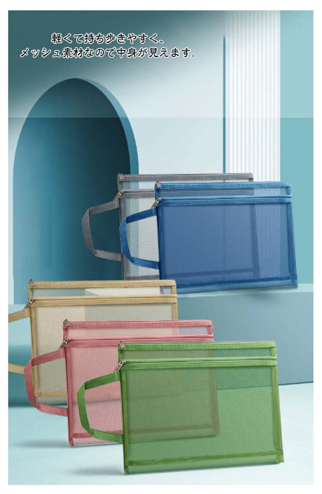 | 【A4サイズ対応】【書類ケース】【中身見やすいメッシュ素材】【5color 25×35cm 3個セット】 文具の収納や領収書・カード類の整理に、小物入れにと、多目的にご使用いただけます。 軽くて持ち歩きやすく、メッシュ素材なので中身が見えます。 口開きが広く、 物の出し入れがしやすくなっております。 ストラップが付いているので持ち運びが楽に行えます。 書類の仕分けだけでなく、バッグの中の仕分けやトラベルポーチとしても便利にご使用いただけます。 | |