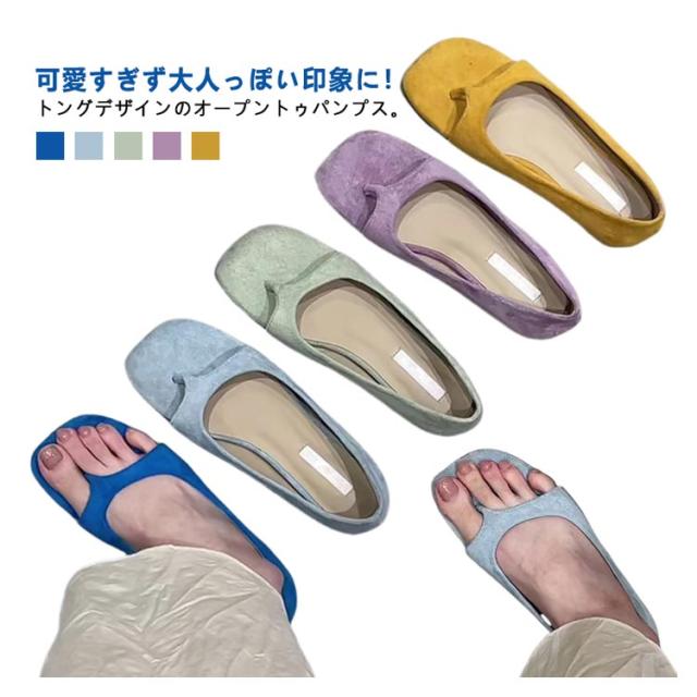 トングデザインが可愛い!パンプス トングデザインが可愛い!パンプス 美脚パンプス オープントゥ ぺたんこ ゆったり 靴 普段使い 日常使い 休日 旅行 お散歩 お出かけ 疲れにくい シンプル おしゃれ