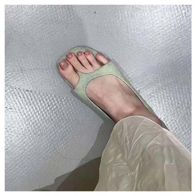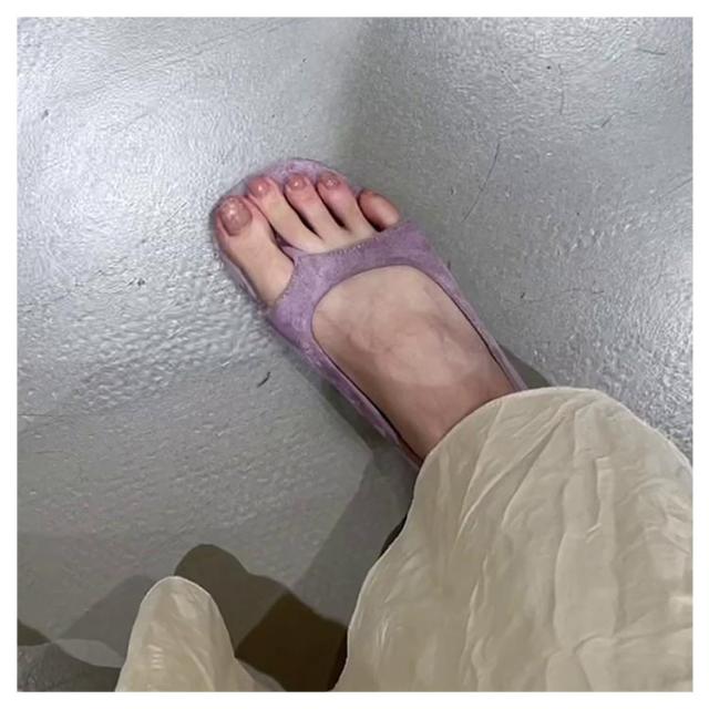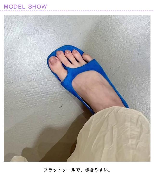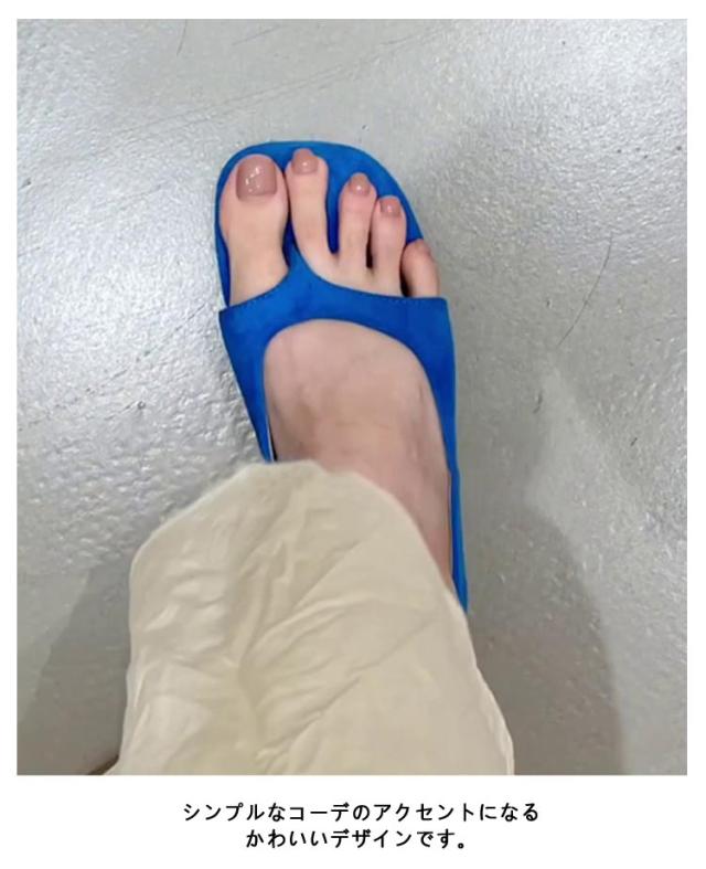 | 可愛すぎず大人っぽい印象に!トングデザインのオープントゥパンプス。 フラットソールで、歩きやすい。 シンプルなコーデのアクセントになるかわいいデザインです。 | |