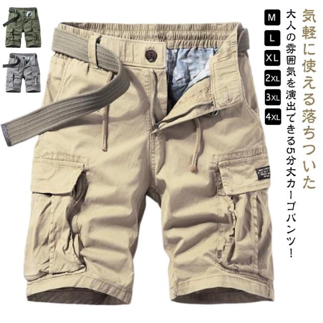カーゴパンツ 五分丈 カーゴ 5分丈パンツ ハーフパンツ 薄手 ハーフ丈 春夏 夏用 コットン 無地 カーゴパンツ ショートパンツ 半ズボン 短パン ストレート 膝丈 普段着 大きいサイズ 多ポケット メンズファッション メンズ カジュアル アウトドア 灰 黒 カーキ